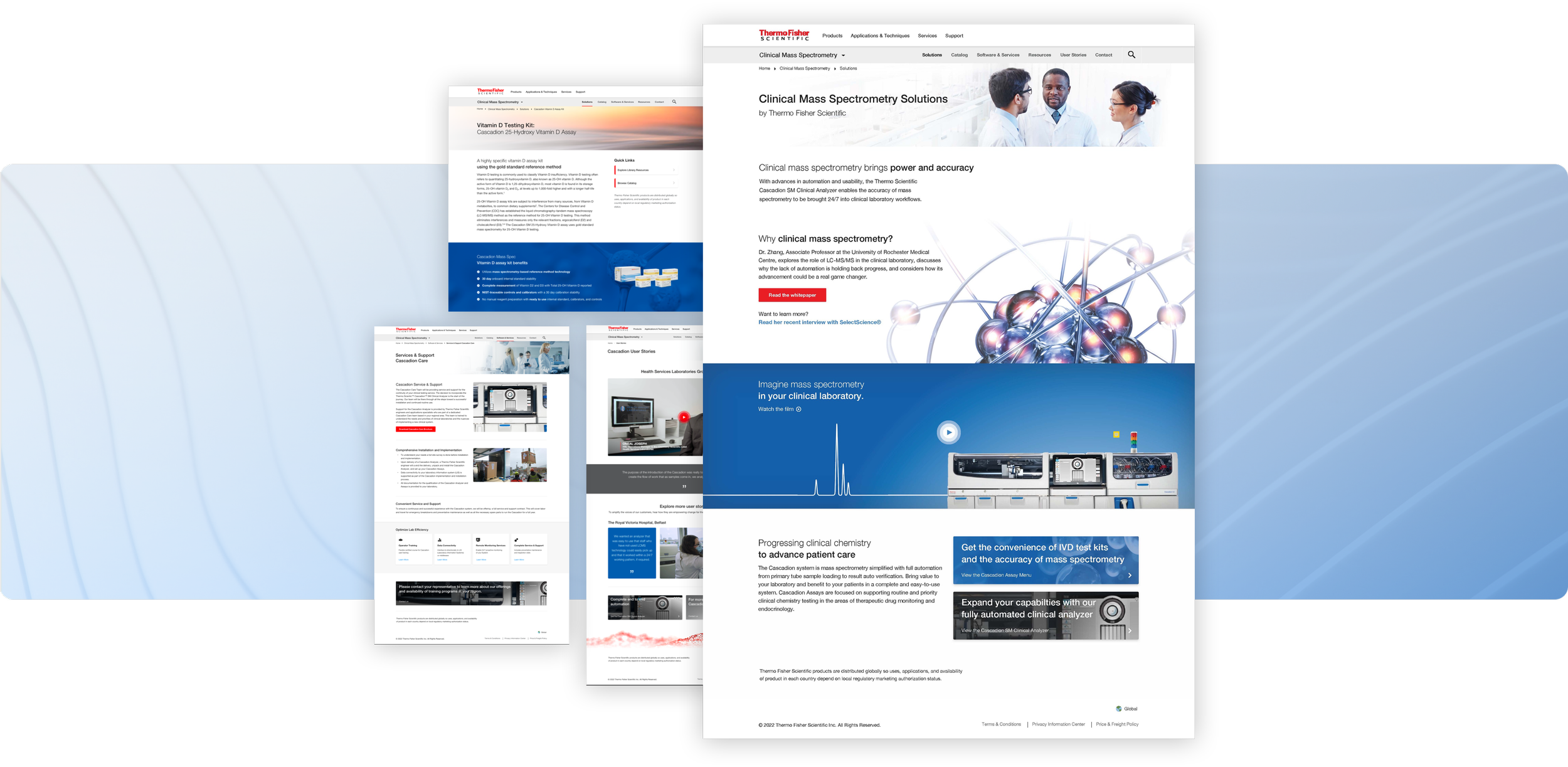 Design a new site that would encompass all of the needs of their marketing strategies and support for current customers, providing an automated clinical mass spectrometry solution (Cascadion SM Clinical Analyzer) for laboratories.